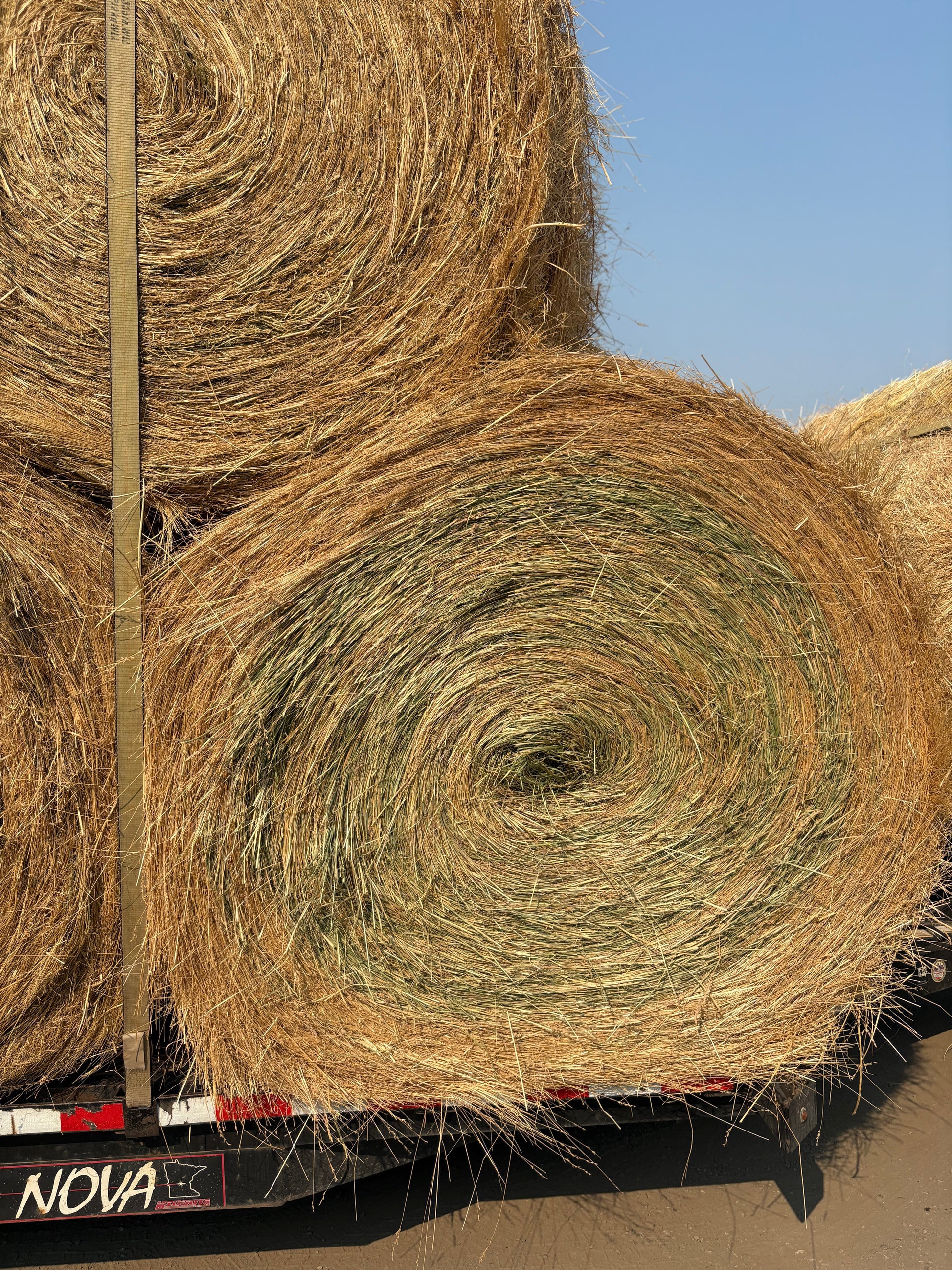 Feeder round bales available. 70:30 mix of grass to alfalfa. Great for cows or nonpicky horses and non picky owners. Average 850lbs. These are twined not netted wrapping 4x5s